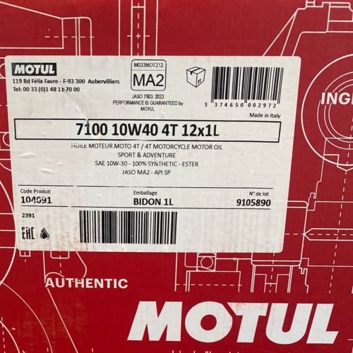 زيت محرك MOTUL 7100 4T 10W40. هذا المنتج هو زيت محرك اصطناعي بالكامل مصمم للاستخدام في درجات الحرارة العالية والمنخفضة.